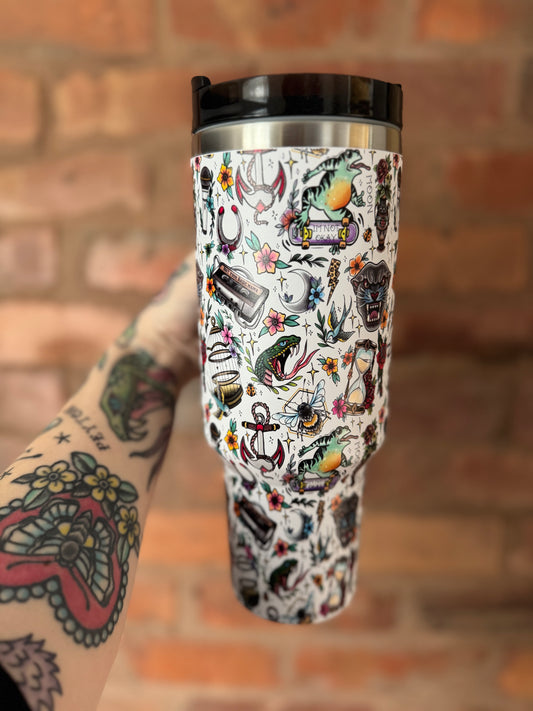 Sold outTraditional Tattoo 40OZ Travel Mug